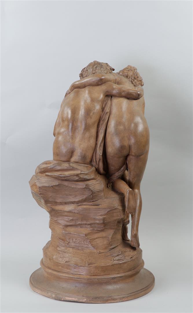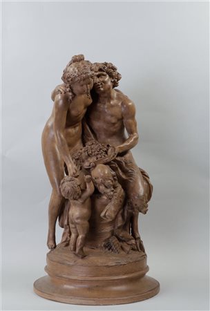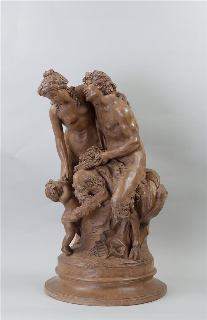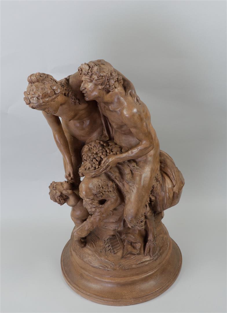 After Claude Michel Clodion, Satyr, Bacchante and Amor as personification of drunkenness. Signature (on the back), terracotta, France ca. 1900.