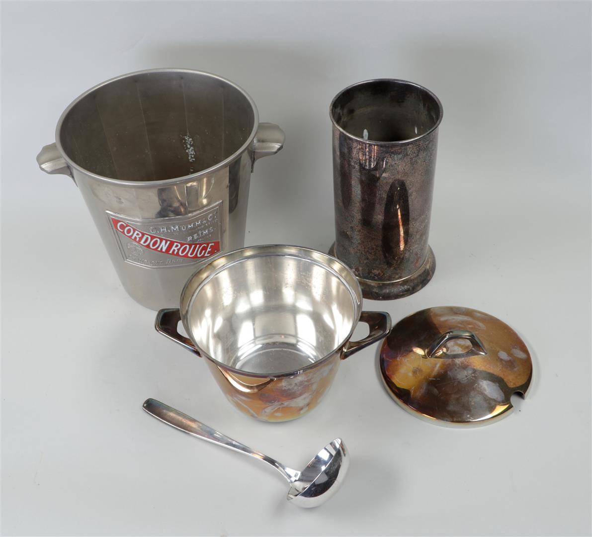 A lot of silver plated consisting of a bottle cooler, champagne cooler 'Cordon Rouge' and WMF soup tureen.