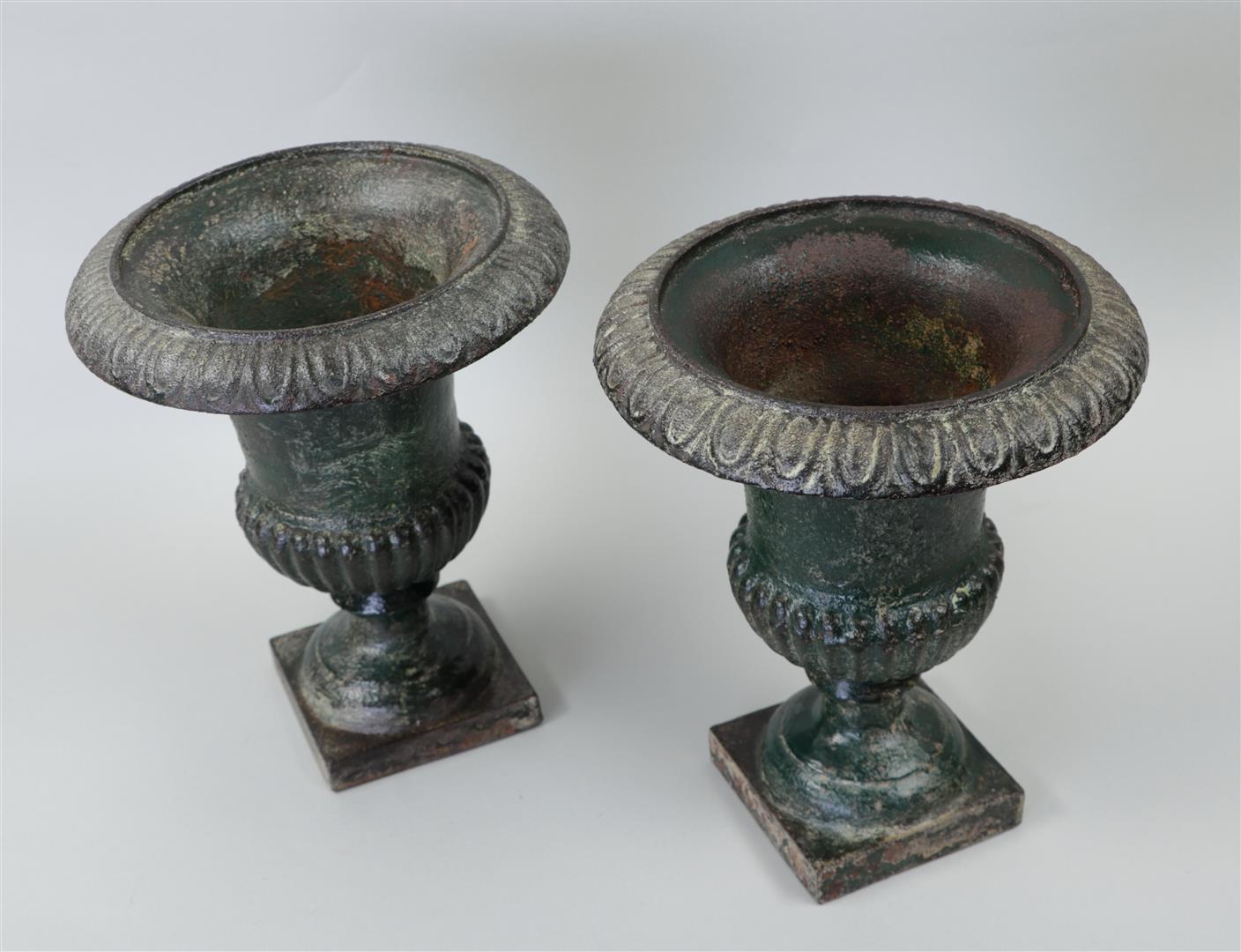 Lot 112 | A set of cast iron polychrome garden vases. H. 24 cm.
