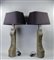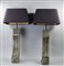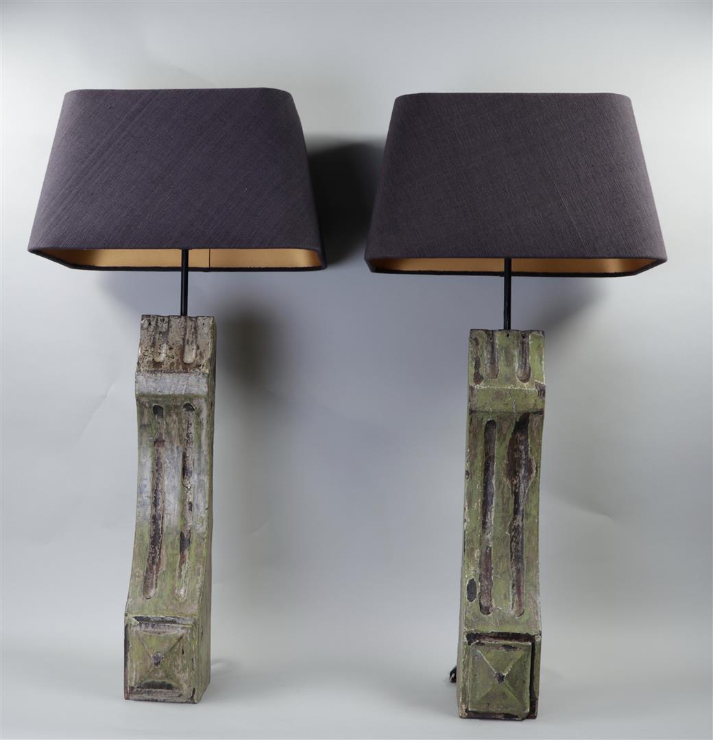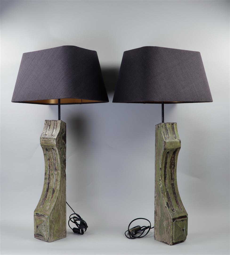 A set of wooden polychrome ornaments converted into table lamps. H. 80 cm.