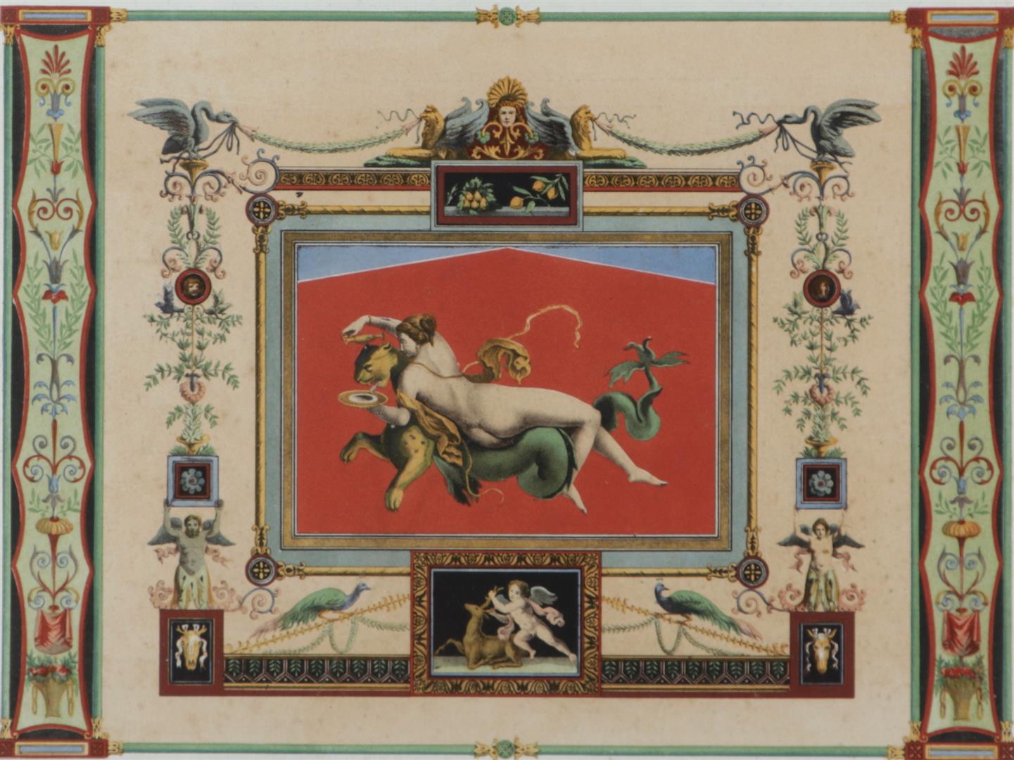 A lot of (4) decorative reproductions after classical scenes inspired by Pompeii and Herculaneum, including (2) prints with butterflies. Various sizes. See all photos.