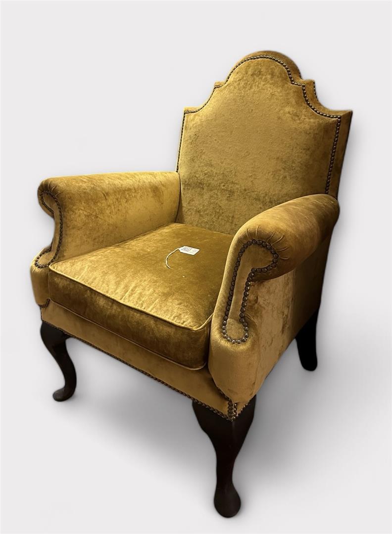 An Italian armchair upholstered in gold-coloured velvet. 19th century.