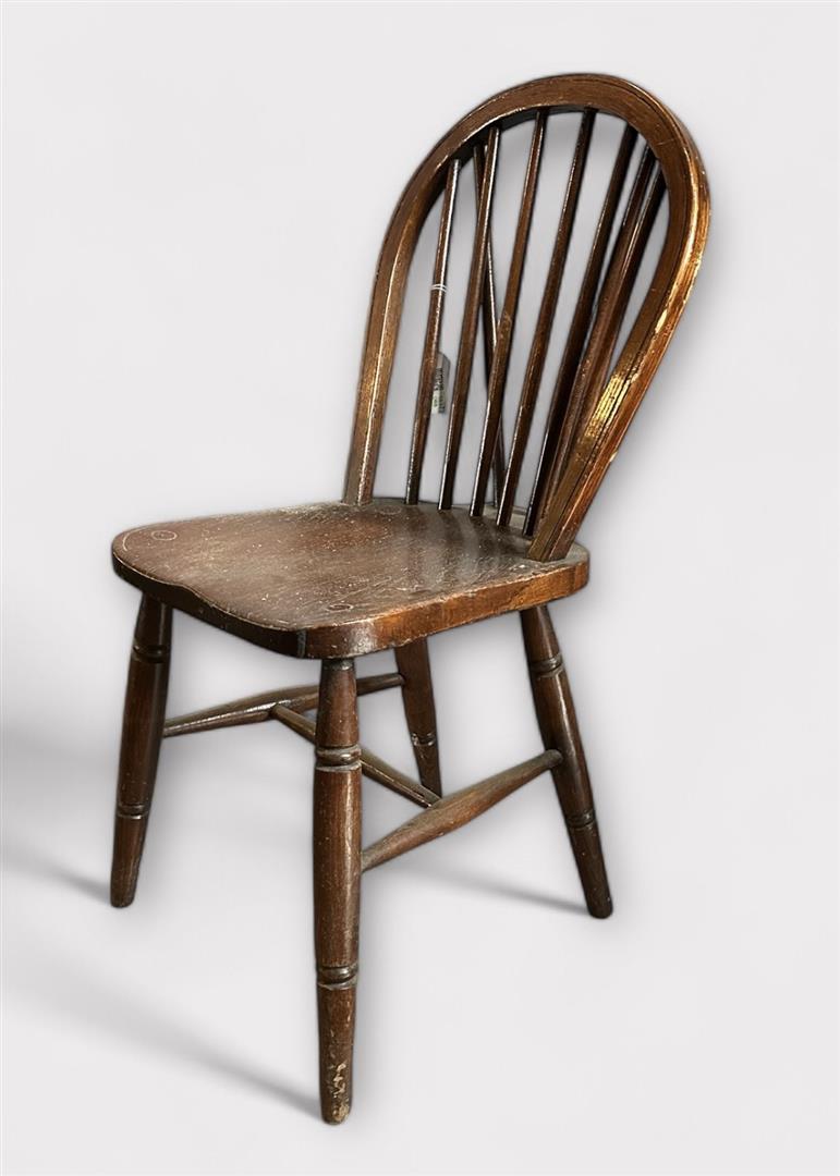 An elm Windsor kitchen chair. England, 19th century. 86 x 41 x 45 cm. Seat height 45 cm.