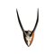A large taxidermy skull of a Speisbok/Orxy, on wooden shield.