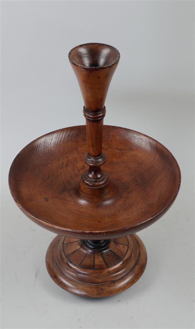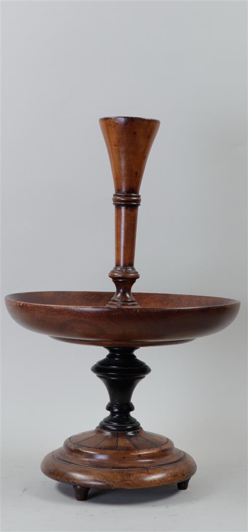 A turned wooden fruit bowl, 19th century. Height: 46 cm., Diam. 27 cm.