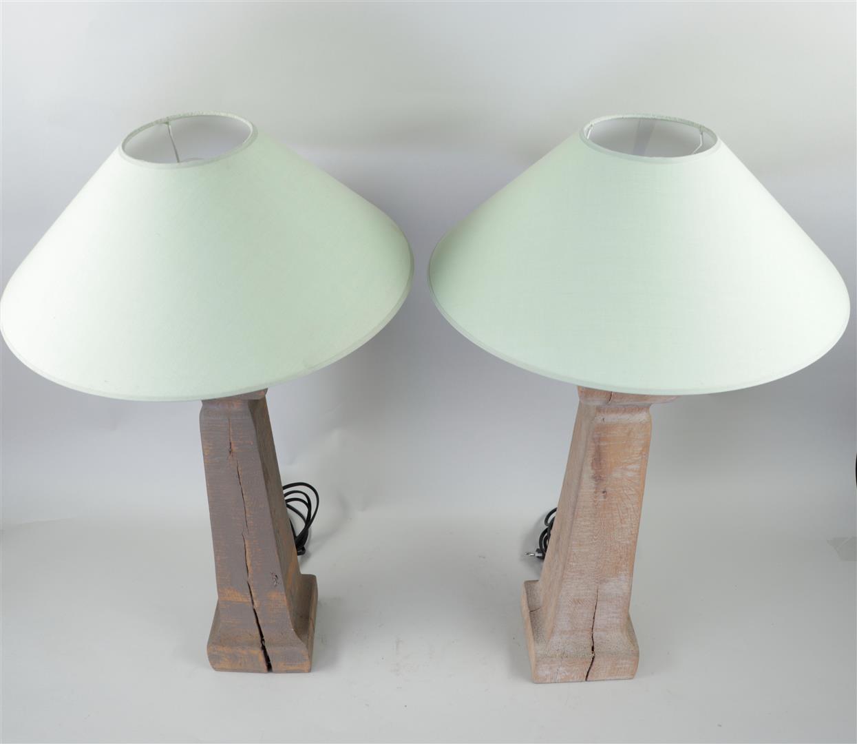 Lot 151 | Two bleached wooden columns, converted into table lamps. H. 72 cm.