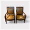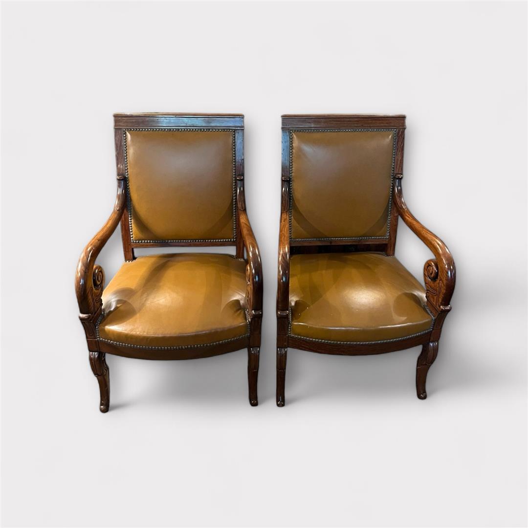 A pair of Charles X armchairs upholstered in mocha leather. France, 18th...