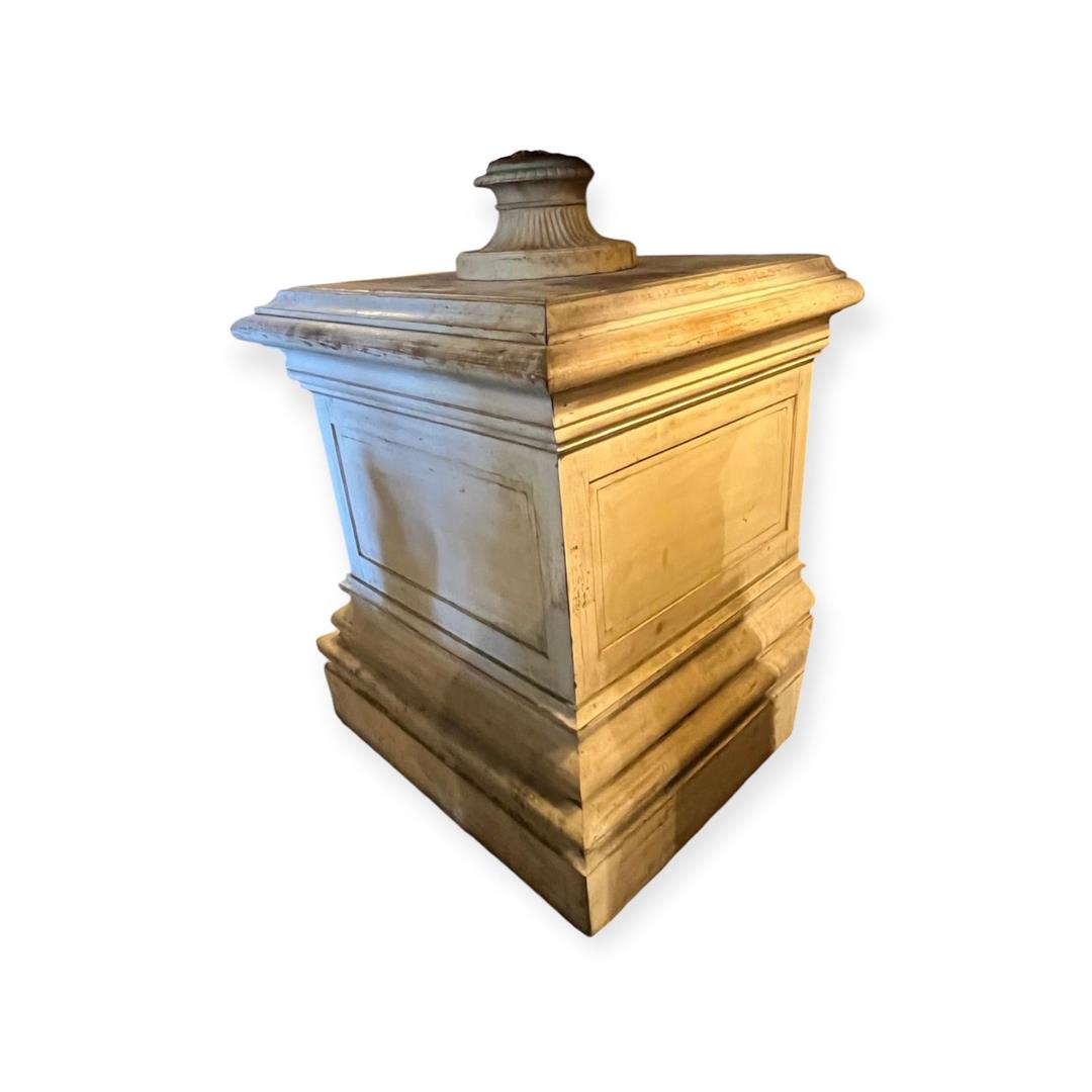 A very large, decorative white painted plinth, 20th century. Base: 125 x 96 cm. x Height 110 cm.