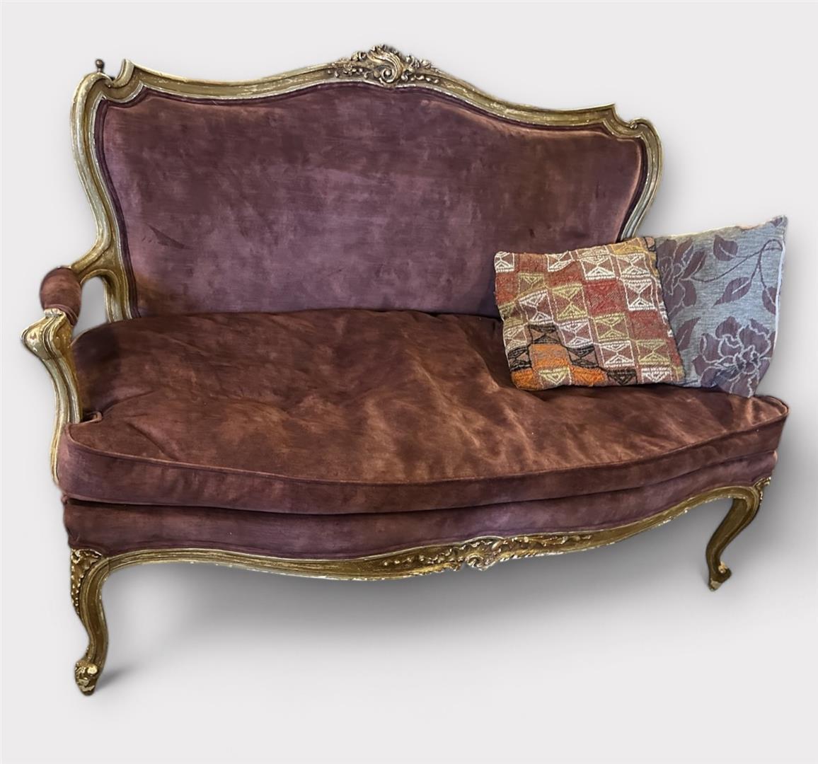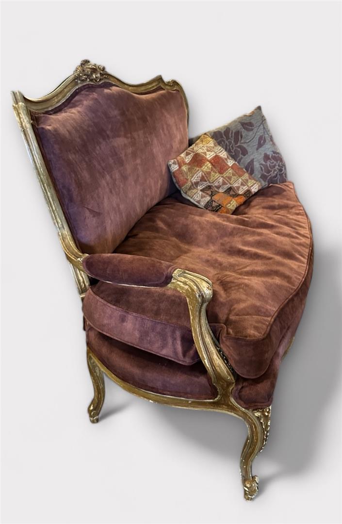 A purple fabric upholstered Louis XV style bergère, 19th/20th century. 95 x...