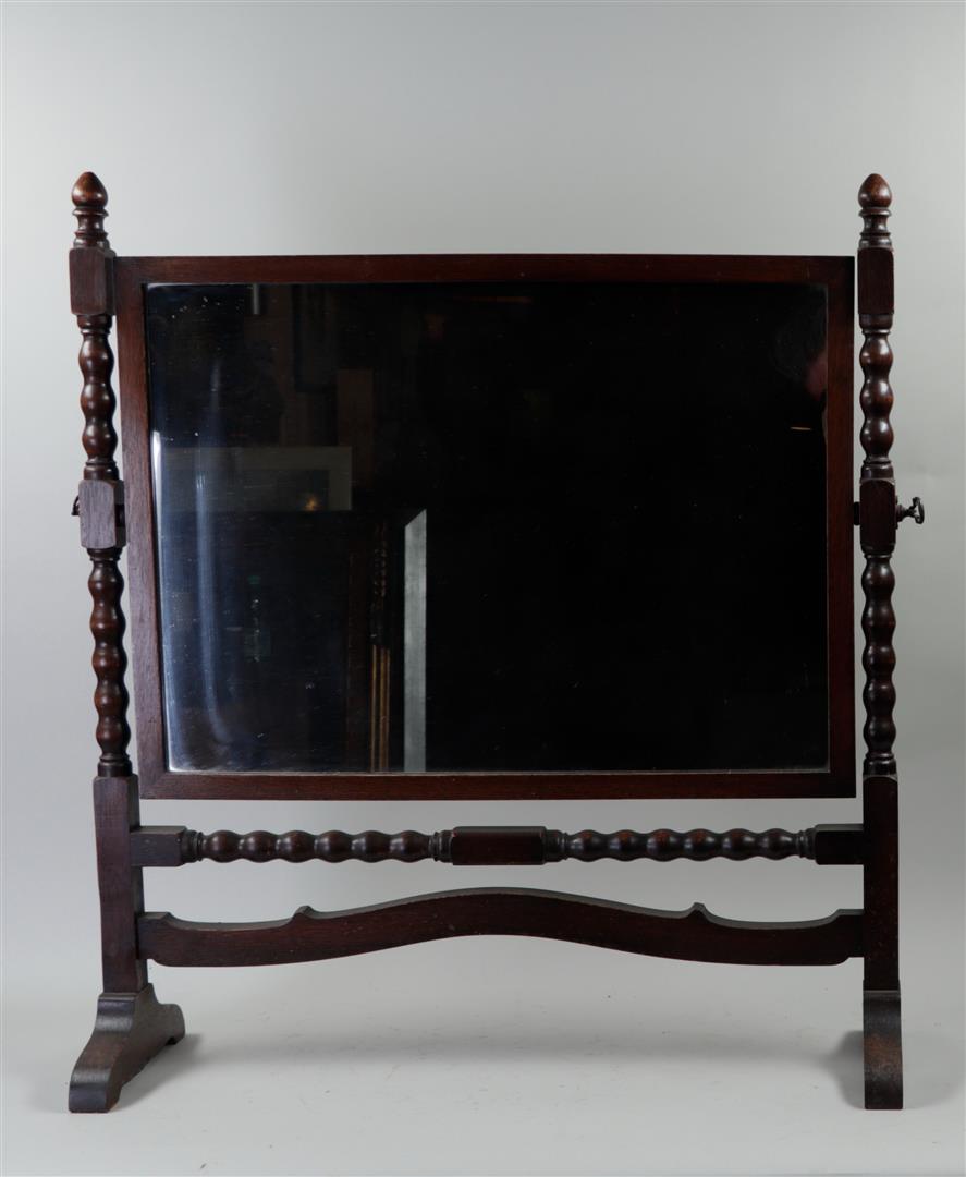 A tilting dressing table mirror with turned uprights, late 19th century.
