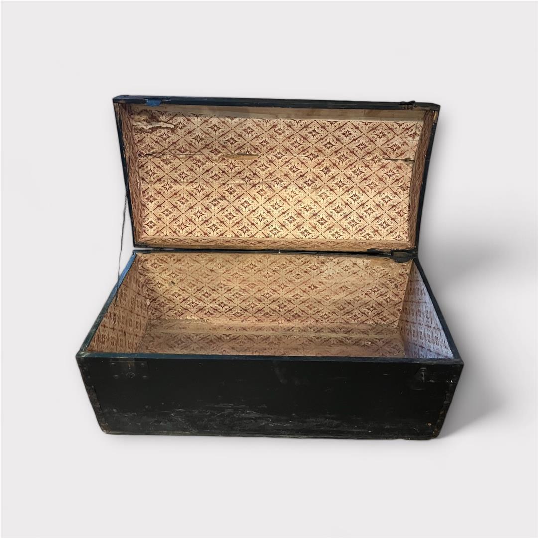 Two antique black lacquered travel chests. See all photos for both chests. 45...