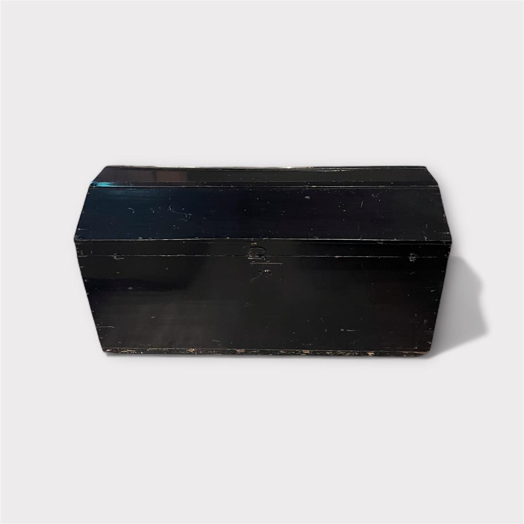 Two antique black lacquered travel chests. See all photos for both chests.