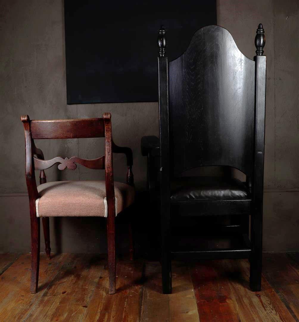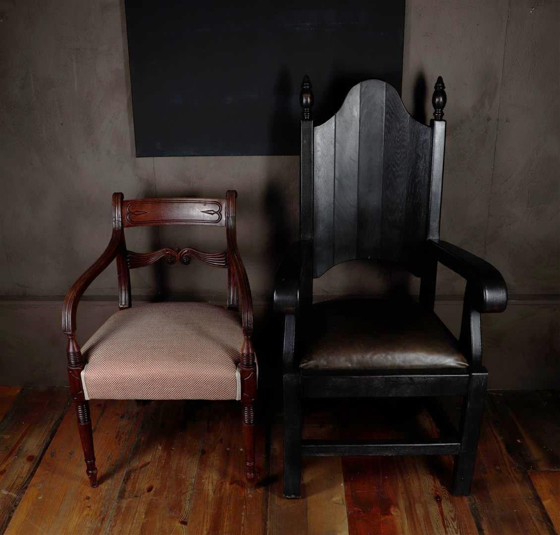 A dark stained armchair in Gothic style. An early 19th century armchair....
