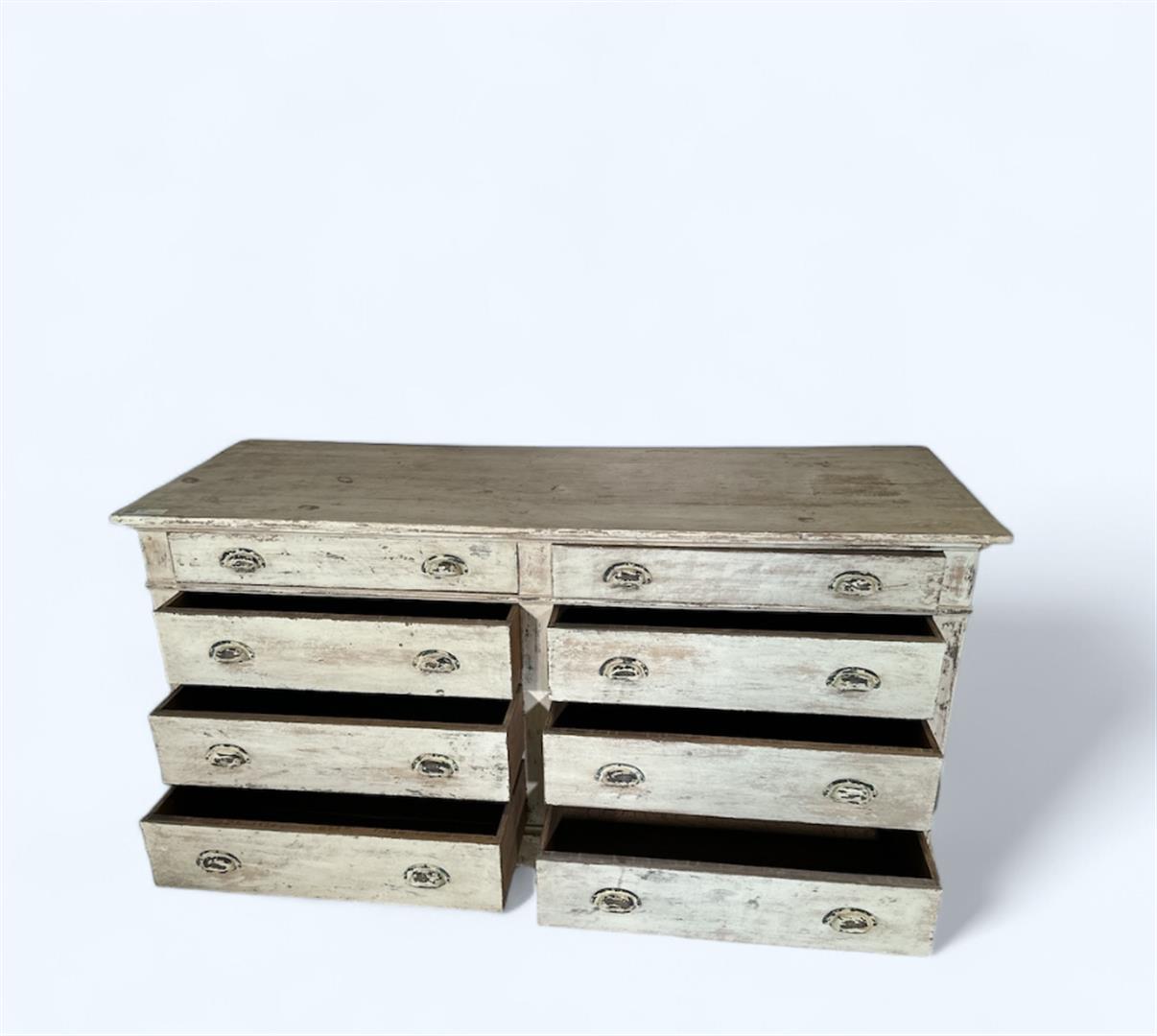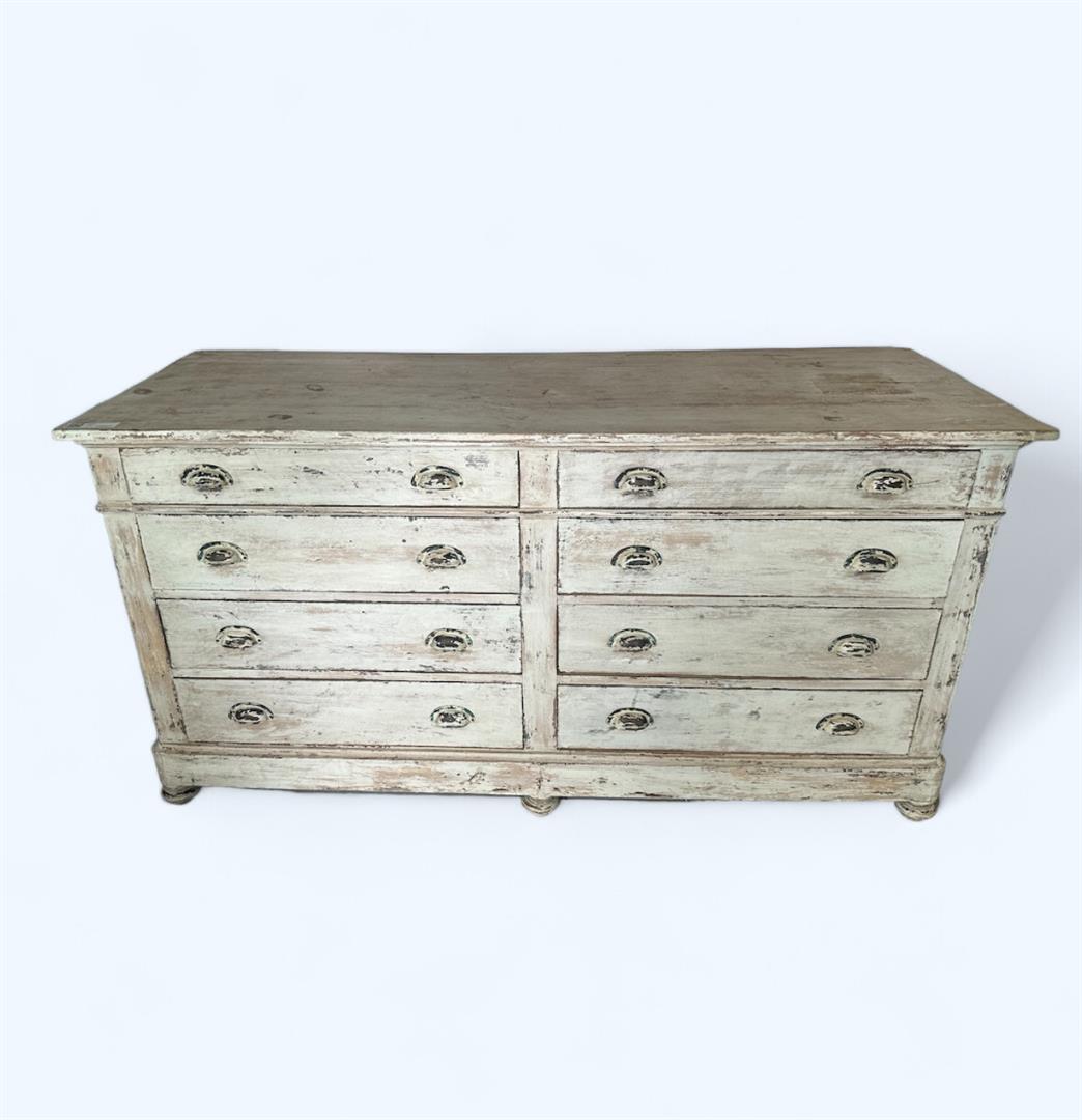Lot 249 | A gray lacquered pine sideboard with a double row of drawers. 85 x 170 x 65 cm.
