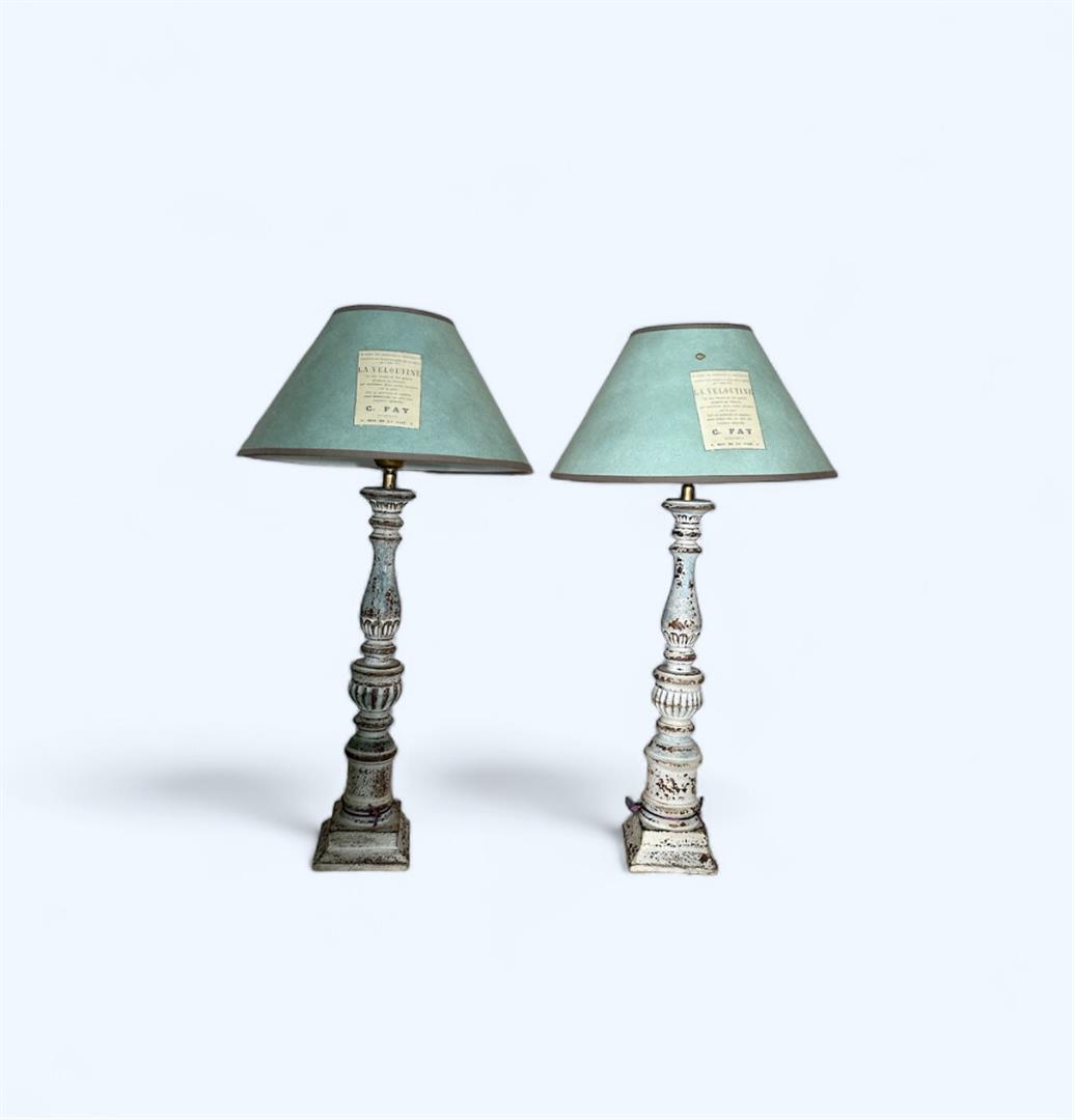 A set of (2) decorative table lamps with green shades. H.: 60 cm.