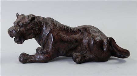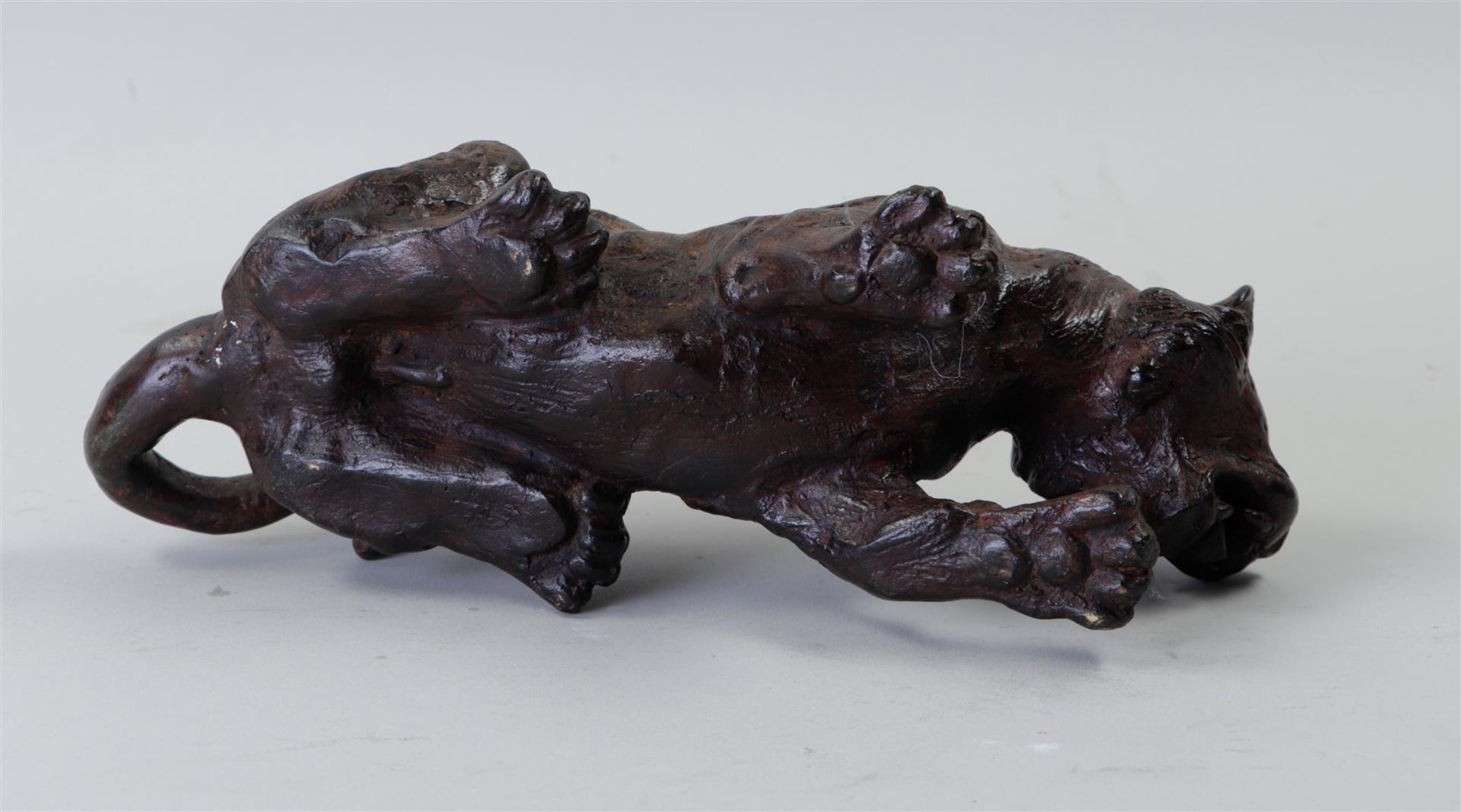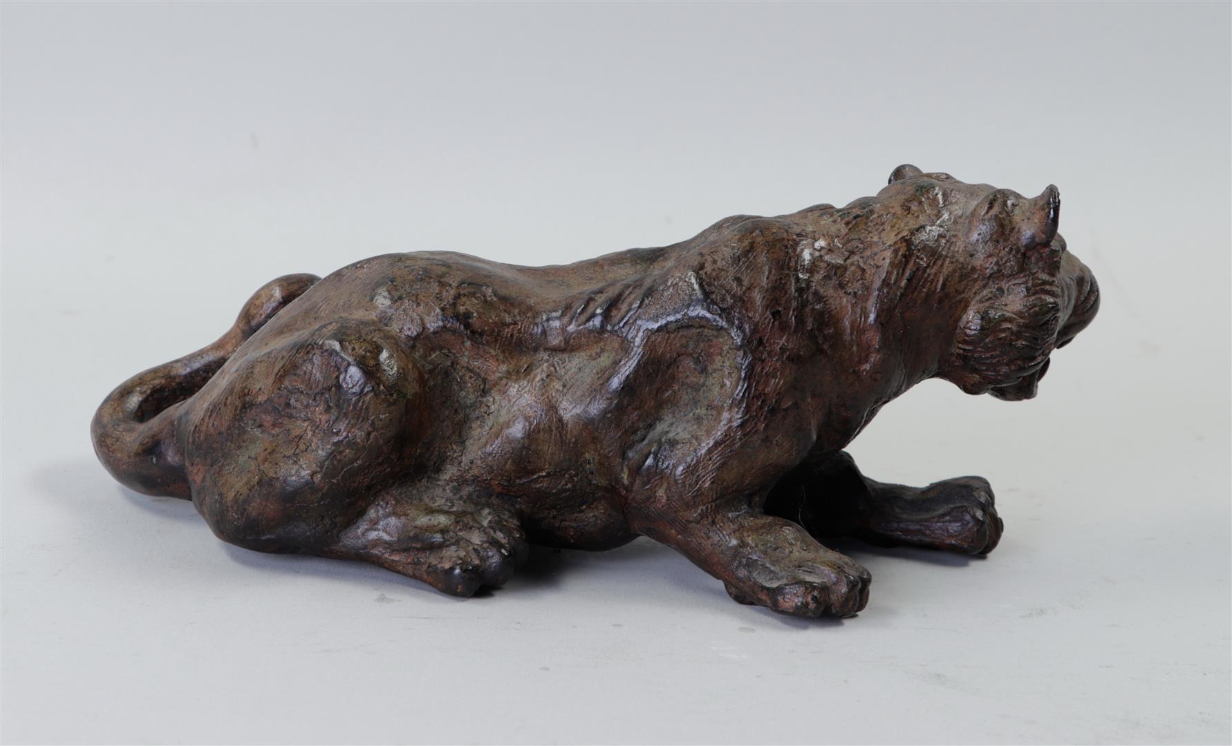 A patinated bronze statue of a tiger. 13 x 26 cm.