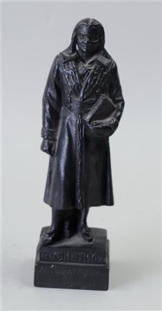 A cast iron statuette depicting André Gretry (1741 - 1813), cast in memory of the World Exhibition in Liège, 1905. (Annotated in the base).