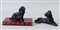 A lot of two patinated metal figures of a dog, a couple of which are sitting...