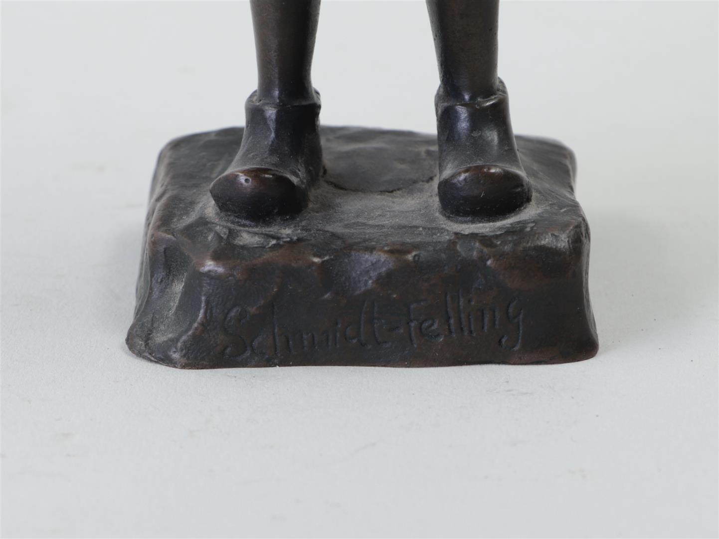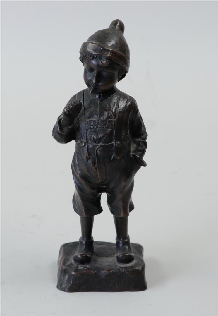 After Julius Paul Schmidt-Felling, patinated bronze sculpture of a smoking boy.