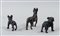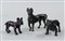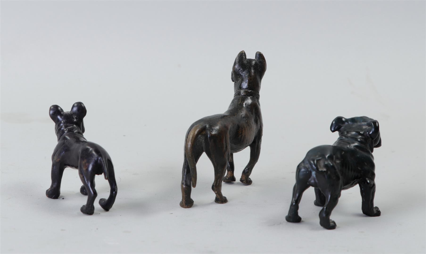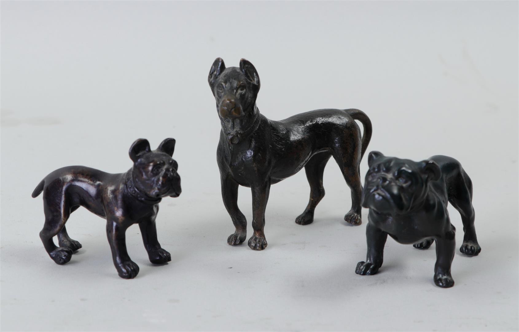 A lot of three patinated bronze dogs. 9 x 9 cm.