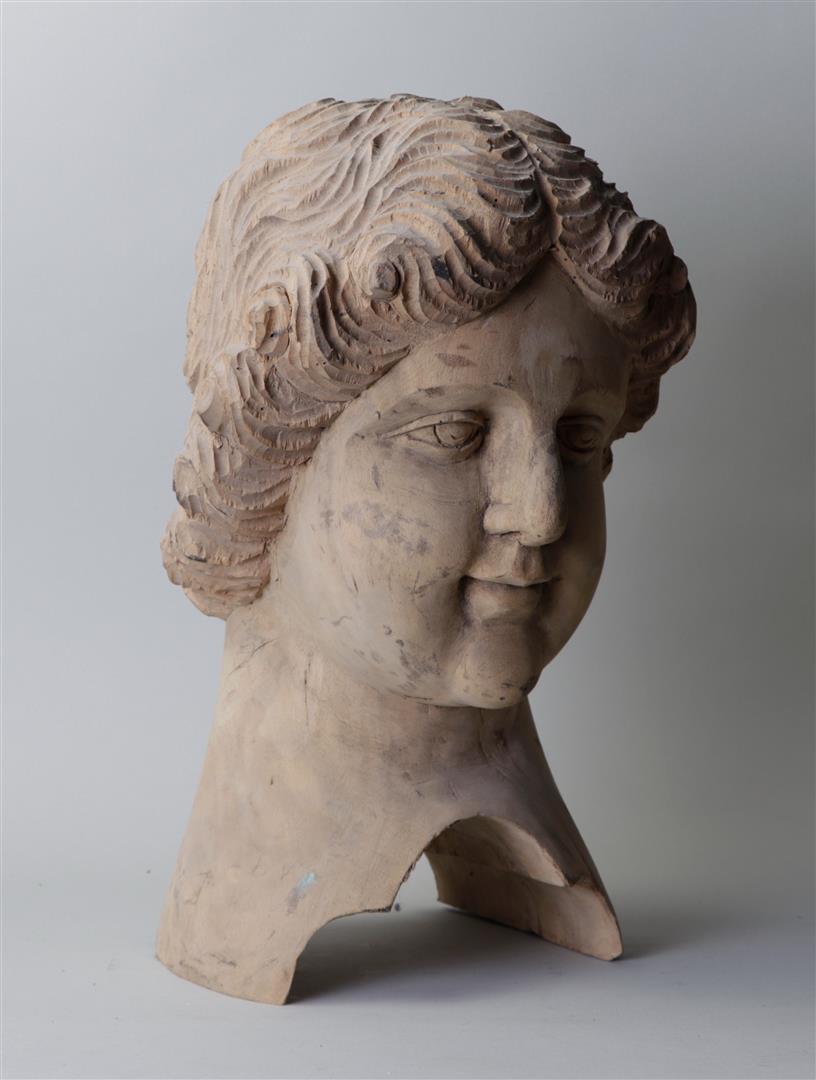 A carved wooden head of a ship's bow, 18th/19th century. H.: 40 cm.