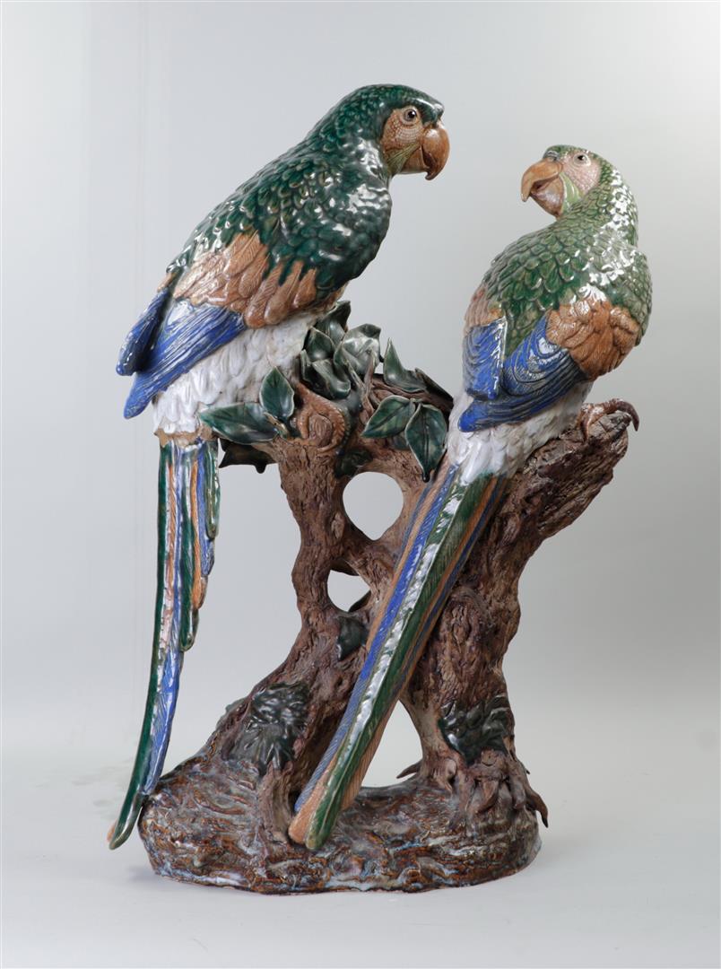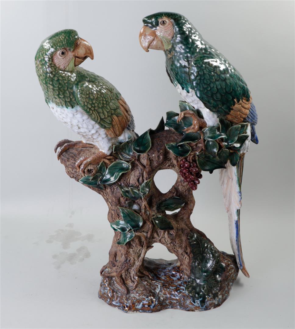 A large Shiwan pottery group with parrots on branches. China, 20th century.