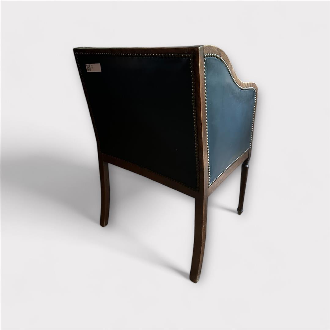 A straight armchair upholstered in green leather and studs. 19th century. 85...