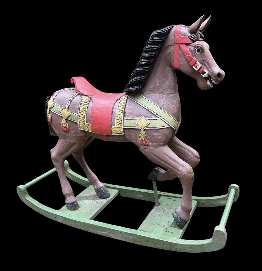 A polychrome rocking horse. 20th century. Height 116 cm.