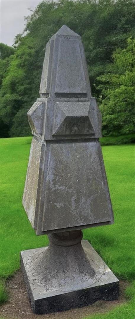 A stone obelisk shaped garden ornament or pinnacle. Height including base: 142 cm.