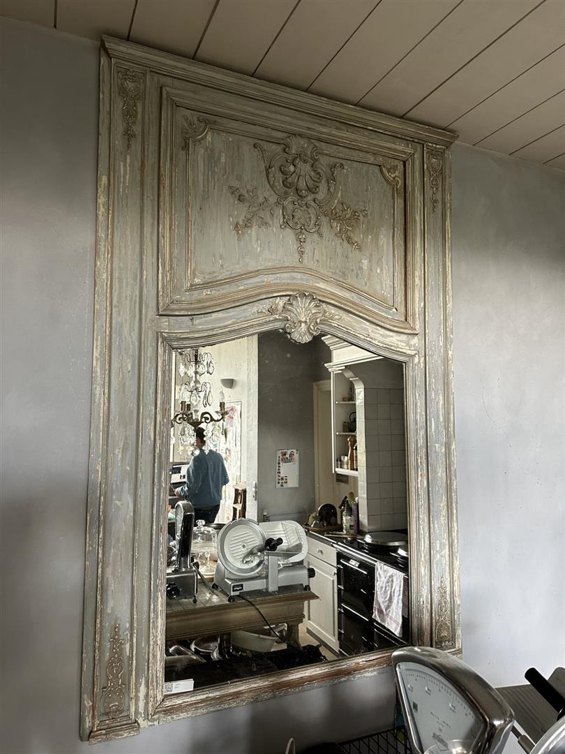 A partly gilded, Louis XVI, ornamented wall or mantel mirror. 185 x 110 cm.