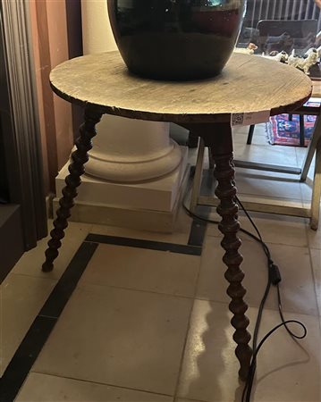 A round oak table on three turned legs. France ca. 1800. 60 x Diam.: 50 cm.