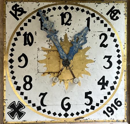 A large clock tower clock face, dated '1916' 120 x 120 cm.