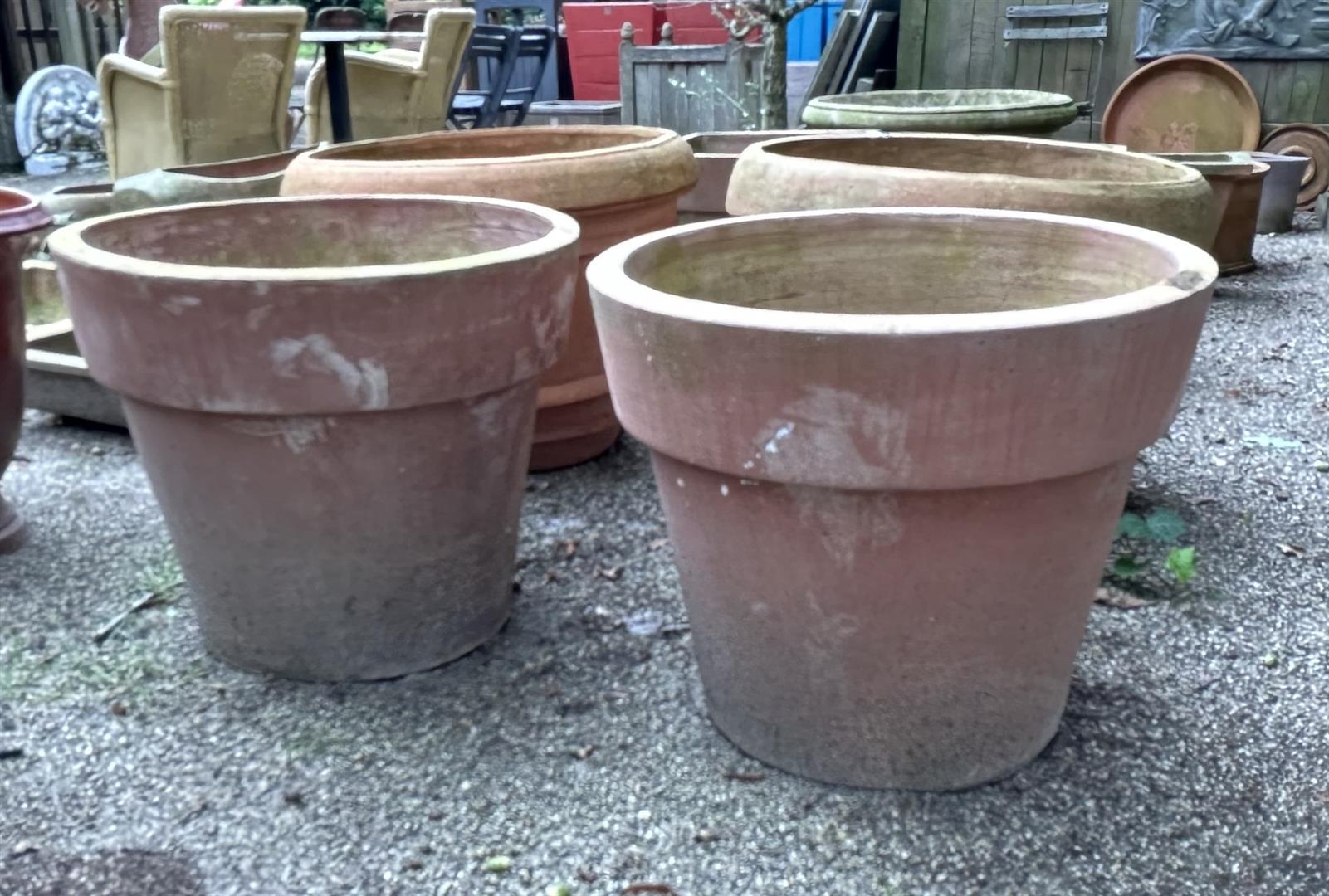 A pair of very large, hard-baked, Italian, terracotta garden vases. Height: 57 cm. x Diam.: 66,5 cm.