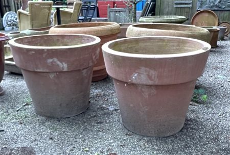 A pair of very large, hard-baked, Italian, terracotta garden vases. Height:...