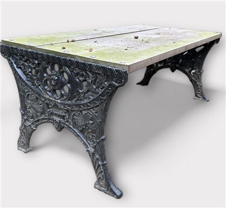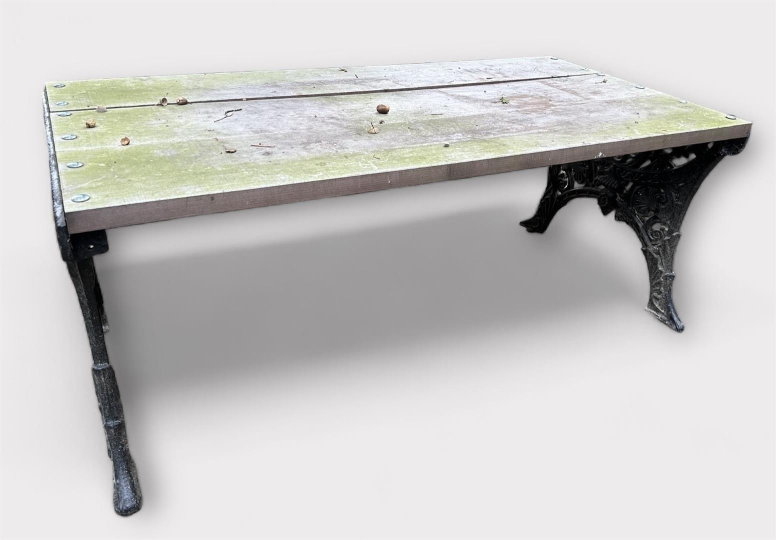 A teak garden box on cast iron legs. 52 x 125 x 64 cm.