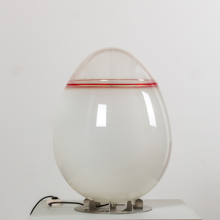 Acciaio inox spazzolato vetro a incalmo trasparente e bianco lattimo con filo rosso.