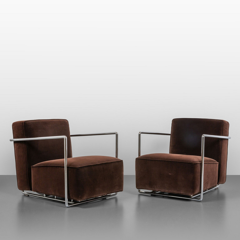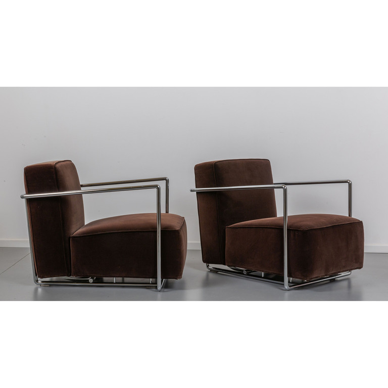 Chrome-plated steel reclining backrests and extendable seats with padding covered in velvet.