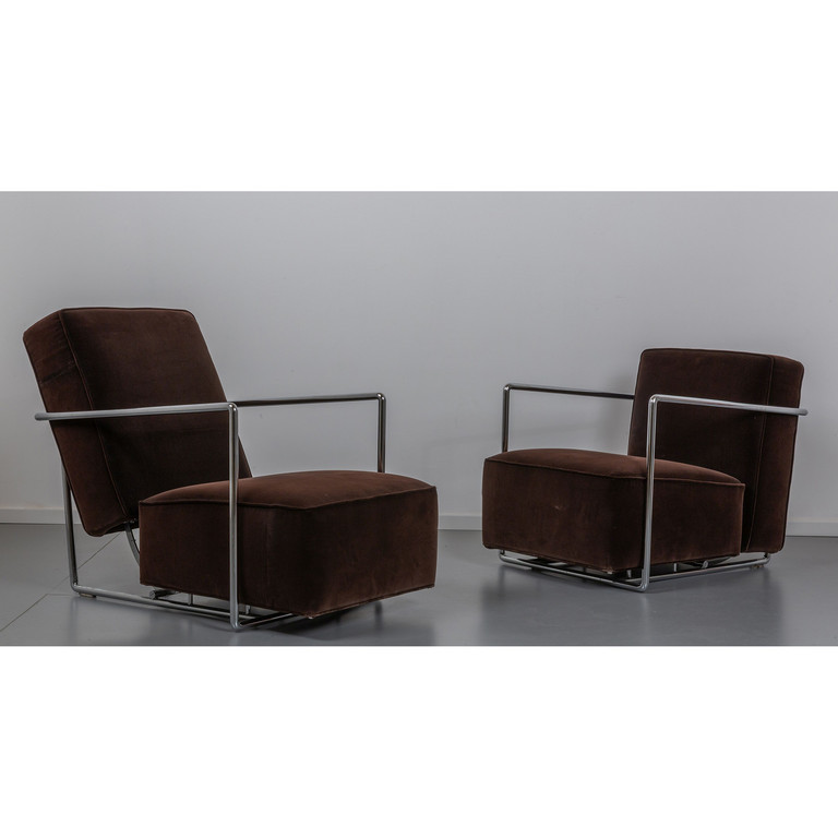 Acciaio cromato schienali reclinabili e sedute allungabili con imbottiture rivestite in velluto.