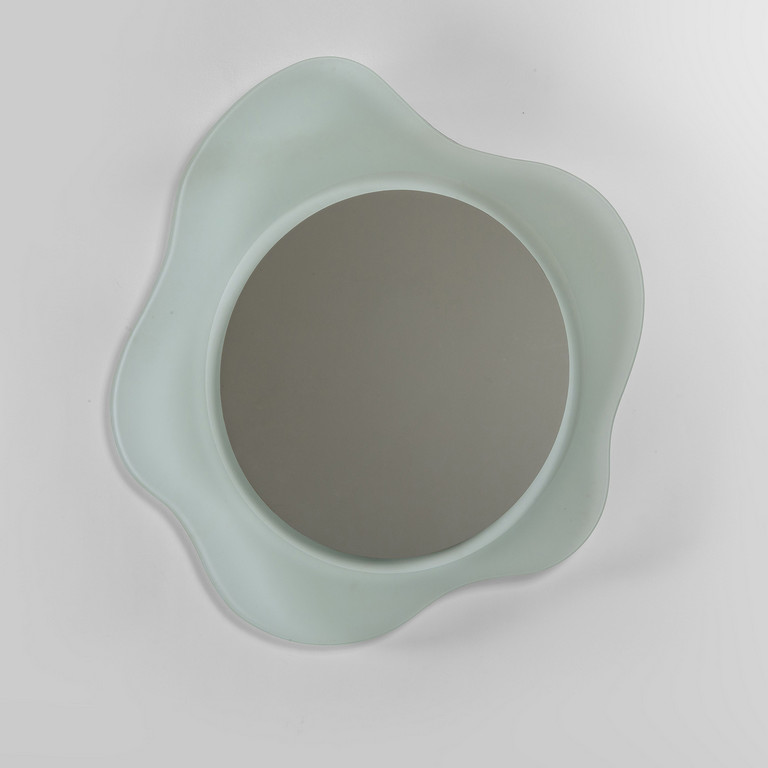 Cristallo sagomato molato con registro satinato a getto di sabbia e registro argentato.