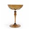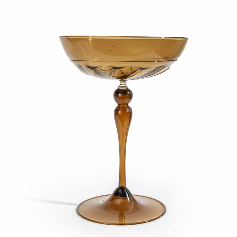 Una grande coppa costolata ritorta su largo piede e alto stelo in vetro trasparente oliva.