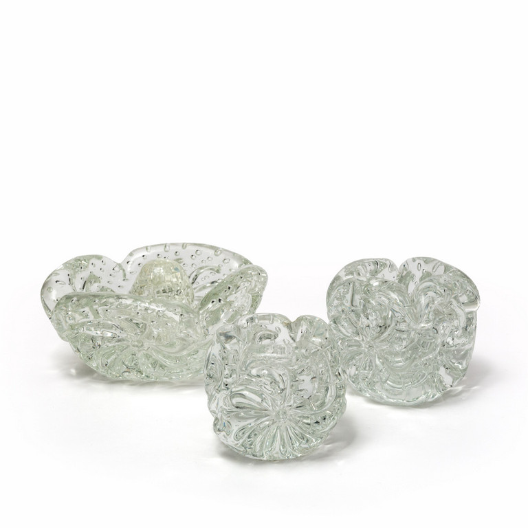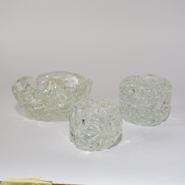 Un set da fumo quattro pezzi in cristallo a bolle con decoro di grosse margherite.