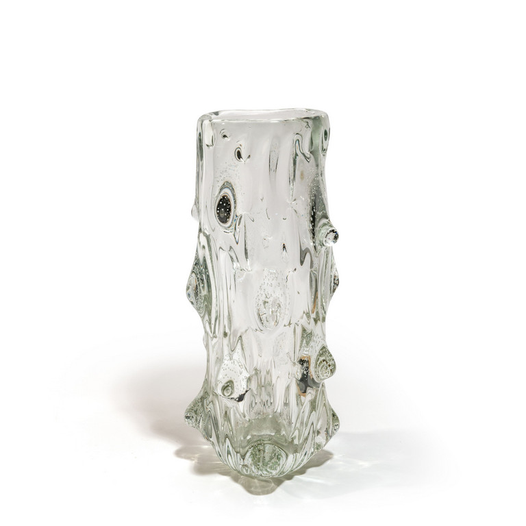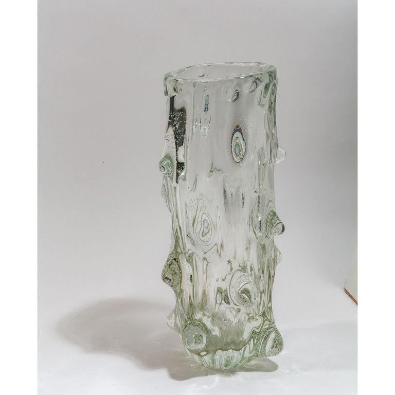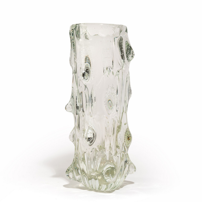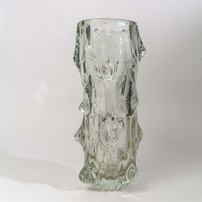 Un vaso 'mugnoni' in cristallo decorato da grossi rilievi con bolle d'aria.