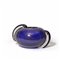 Un vaso in vetro sommerso blu a bollicine e foglia oro con cordoni laterali in cristallo e blu.