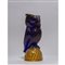 Una figura di gufo in vetro pieno blu cobalto a bolle regolari e foglia oro base in cristallo e