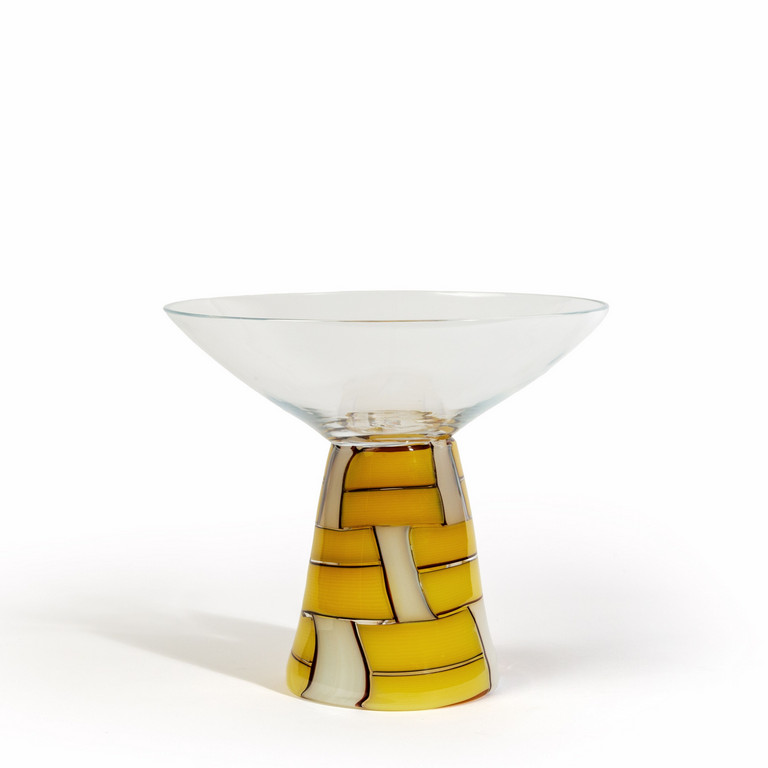 Un vaso 'bipezzato' formato da coppie di tessere orizzontali gialle alternate a tessere