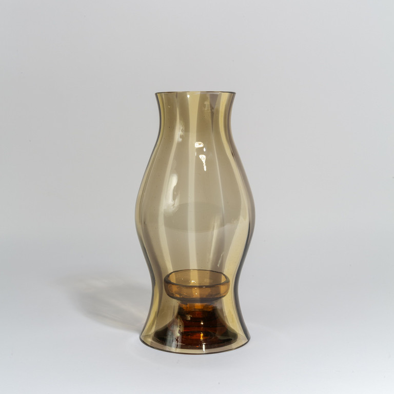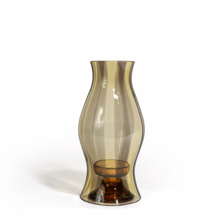 Un copricandela in vetro a fasce verticali grigio e fumè un portacandela in vetro