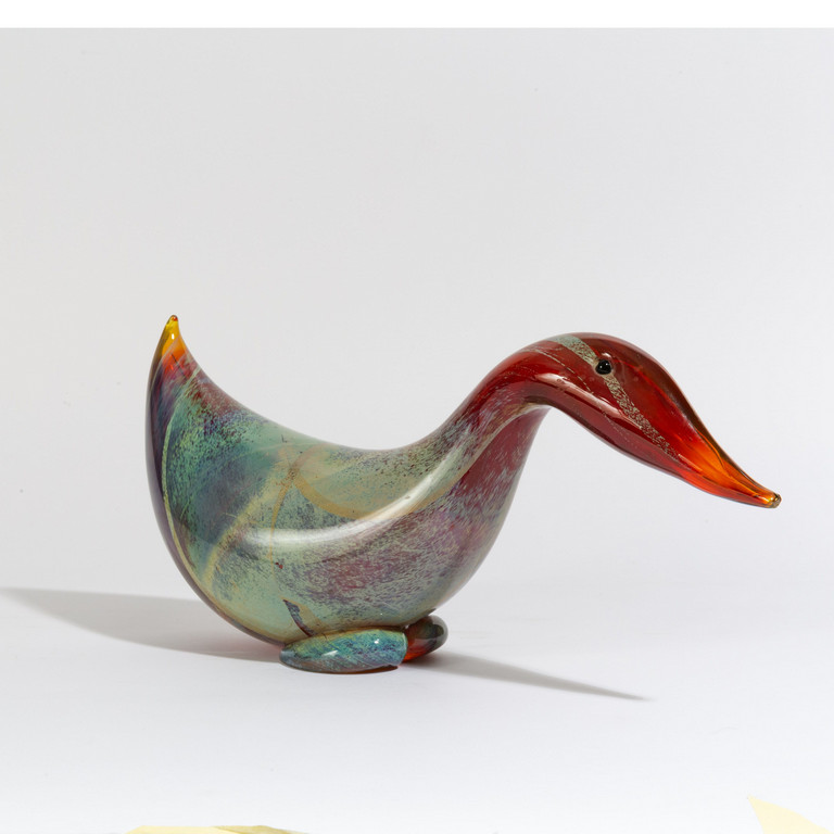 Figura di anitra della serie 'ambrati' in paste vitree simili al calcedonio con varie sfumature
