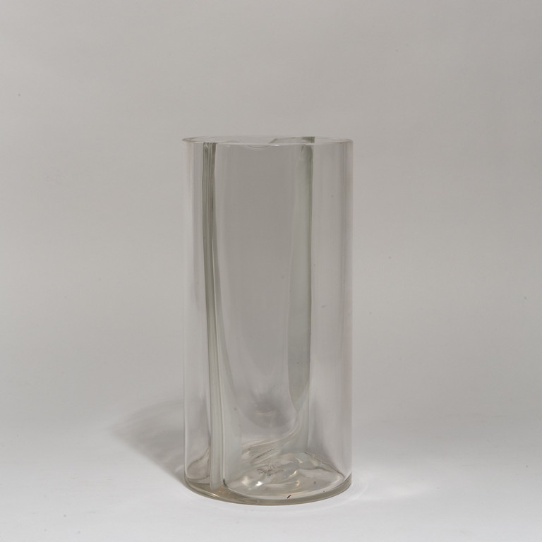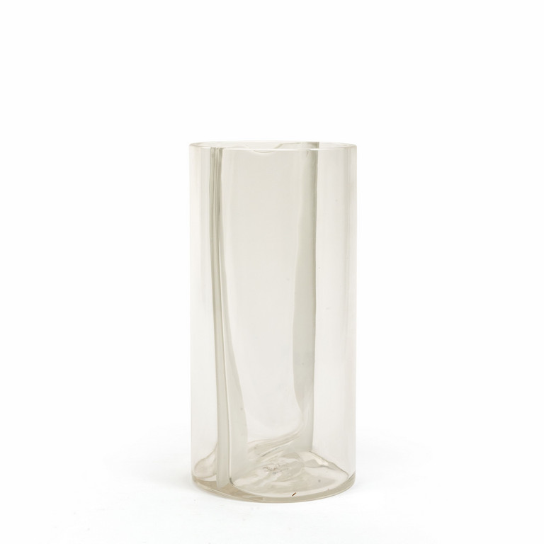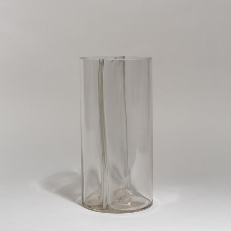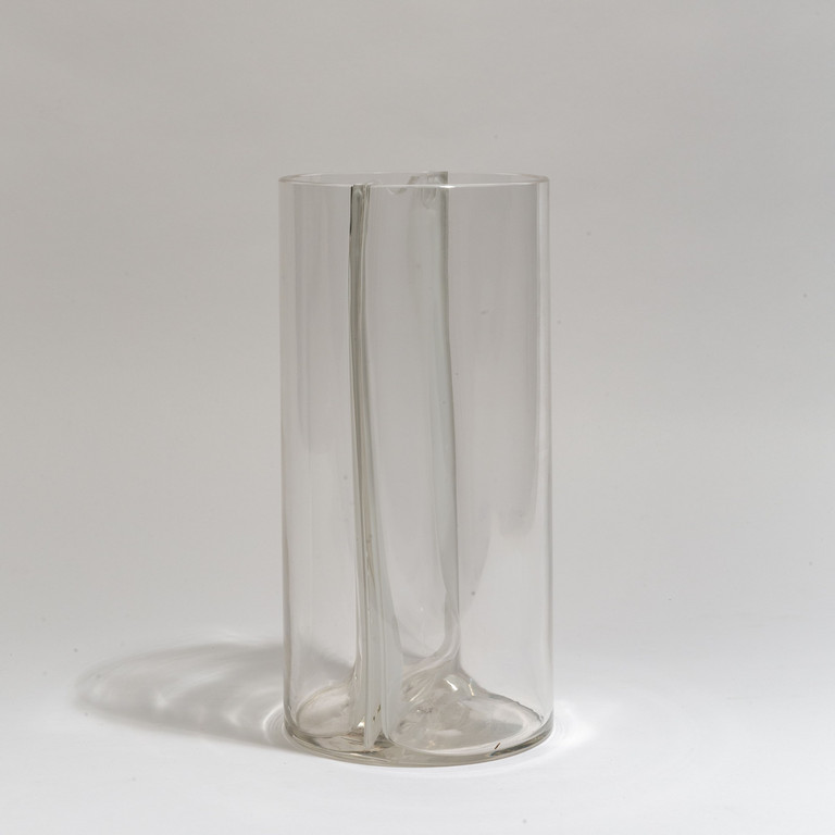 Un vaso cilindrico della serie 'membrane' in cristallo con diaframma in lattimo.