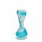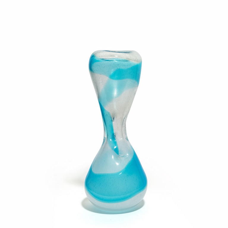 Un vaso a clessidra in vetro trasparente a bollicine con decoro di larghe fasce azzurro
