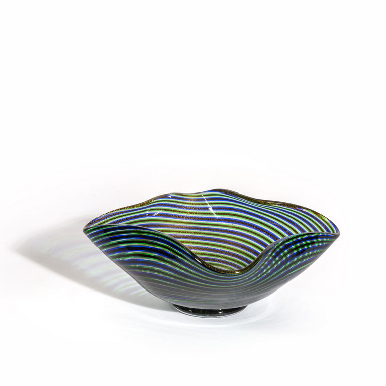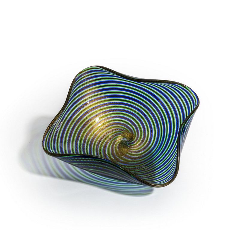 Una coppa 'spira aurata' a canne policrome ritorte e foglia oro.